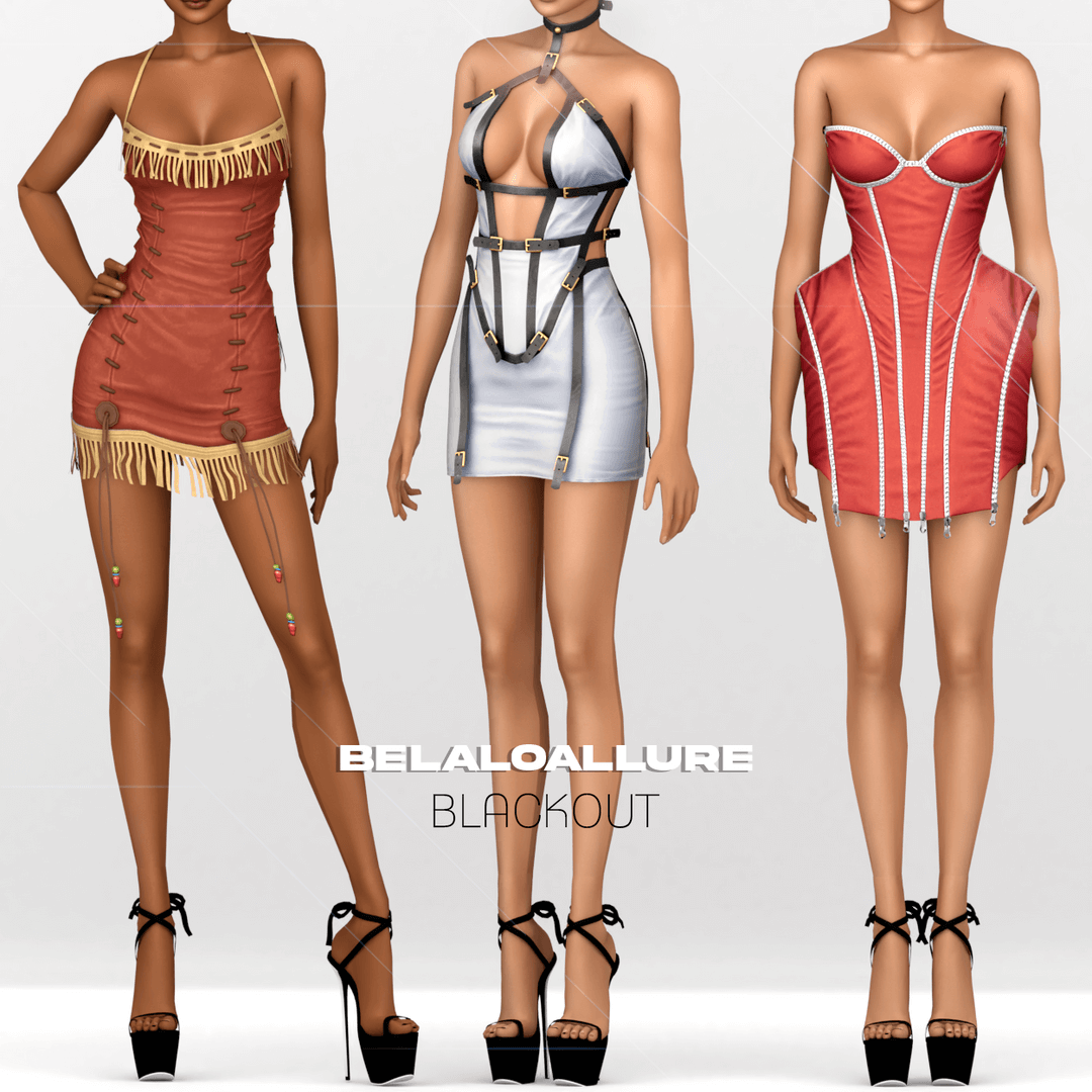 Hey everyone ! this collection is my personal favorite , i was listening to Britney’s Blackout album and i got inspired by it and the whole Y2k era aesthetic that i grow up seeing , the blackout collection contain dresses that reflect my own style , it combine both slinky and fashionable style , notes : new mesh all LOD custom thumbnail HQ compatible