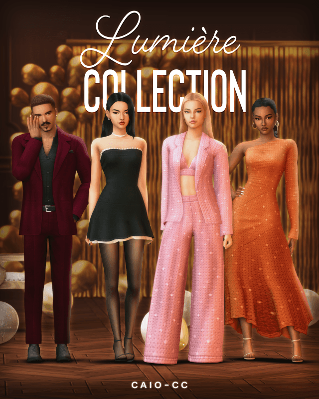 Lumière Collection Hey Simmer! ✨ Celebrate the festive nights with Lumière, a curated set of 9 pieces crafted with velvet textures and glitter accents. Every item was made to bring elegance and shimmer to your most special gatherings. From refined shapes to sparkling finishes, this collection was created to light up every celebration. BG Compatible T-E Male & Female Custom Tumbnails 18 colors Glitter Palette 16 colors Velvet Palette 15 colors leather palette