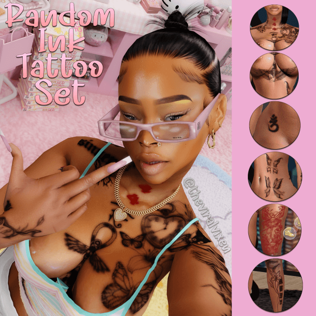 Random Ink Tattoo Set One swatch. Tattoo set located in upper left arm in CAS. Custom CAS thumbnail. Tattoo set was tested in game.