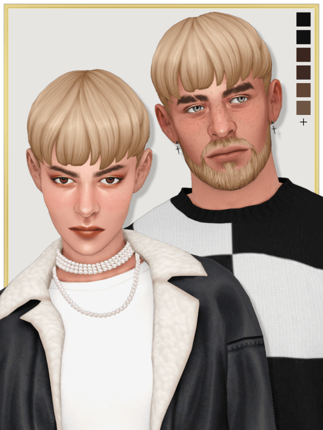 TOMMO | male & female hair managed coming back from the dead to finish this lame mesh edit i started more than 1 year ago. hello tutti 💀 separate packages for the m & f frame Maxis palette (24 swatches) BGC hat compatible polycount: 4k